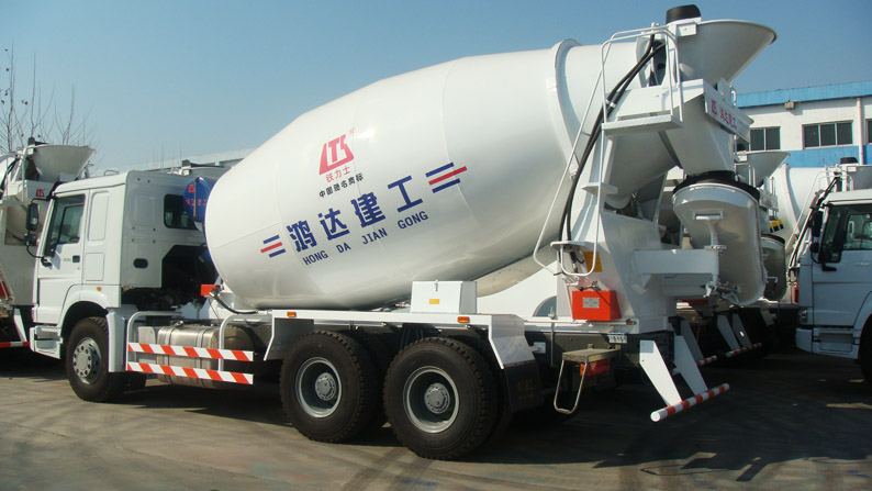 鴻達系列混凝土攪拌運輸車是山東鴻達集團在吸收國內外先進技術的基礎上自行研制開發的。該產品主要應用于混凝土拌合料的長距離攪拌輸送,能有效延緩混凝土的初凝,避免發生混凝土的分層和離析,確保試工的質量和速度。鴻達系列混凝土攪拌運輸車有8m3、9 m3、10 m3、12 m3、14 m3、16m3各種型號,可以根據用戶的選擇與國內外任何攪拌車專用底盤配套。該產品攪拌筒驅動系統采用原裝進口美國或德國的閉式液壓系統泵、馬達、減速機,配套的液壓附件如油箱,散熱器,過濾器,膠管接頭也全部采用進口件,從而確保液壓系統壽命長。攪拌筒筒體和雙對數變參數螺旋葉片,均采用上海寶鋼生產的B520JJ攪拌筒專用特種細晶粒耐磨鋼板制造,在容易磨損的部位如進料斗和卸料斗溜槽等與混凝土接觸的部位也都貼上耐磨鋼板,從而使該產品具有超長的使用壽命。在拌筒內設置多根攪拌臂,同時在攪拌葉片上合理的布置方形孔和圓孔,使混凝土在拌筒內實現真正的三維立體攪拌工作,出料殘留率幾乎為零,同時極大限度的遏止混凝土的離析發生。活動卸料溜槽可以上下左右在不同的位置鎖定,從而實現在不同方位的卸料操作,整個上車采用噴丸烤漆工藝,具有造型典雅美觀,回轉穩定可靠,出料迅速,殘留率低,操作簡便,使用壽命長的特點。