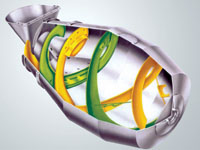 滾筒葉片的三維設計效果圖三段式雙對數螺旋曲面設計,保進出料迅速、殘留率低,合理的攪拌臂與攪拌孔布置,確保混 凝土不離折,進料小錐確保進料快,對葉片沖擊小,出料連續性好。 |