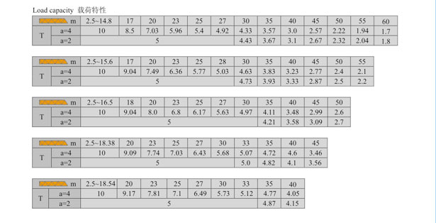 QTZ160(6018)塔式起重機(jī)載荷特性Load capacity 【標(biāo)準(zhǔn)節(jié)】 |