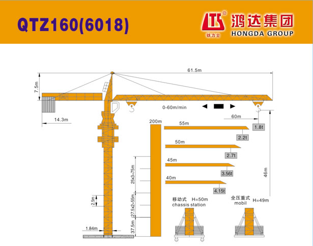 QTZ160(6018)塔式起重機(jī)是滿(mǎn)足GB/T5031<<塔式起重機(jī)>>和GB5144<<塔式起重機(jī)安全規(guī)程>>等標(biāo)準(zhǔn)設(shè)計(jì)的加強(qiáng)型塔式起重機(jī),額定起重力矩160t·m ,最大起重量為10噸,有 TC6018、TC5525、TC5032、TC4537等類(lèi)型。 QTZ160(6018)塔式起重機(jī)起升機(jī)構(gòu)變極調(diào)速,回轉(zhuǎn)機(jī)構(gòu)為變頻調(diào)速機(jī)構(gòu),變幅機(jī)構(gòu)行星齒減速機(jī)內(nèi)置卷筒,電控系統(tǒng)采用進(jìn)口元件,安全保護(hù)裝置為機(jī)械式或機(jī)電一體化產(chǎn)品,齊全可靠,該機(jī)具有固定式、行走式、附著式、內(nèi)爬式等工作型式,可滿(mǎn)足城市中高層建筑、工業(yè)廠(chǎng)房、電站水壩、橋梁等各種建筑施工的需要。 ![]()