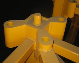 ![]() 主肢局部特寫 塔身標準節(jié)為整體框架結(jié)構(gòu),標準節(jié)之間用12-M36特制高強度螺栓牢靠連接,底架節(jié)之間用16-M36 高強度螺栓連接。每三節(jié)有一休息平臺,同一規(guī)格標準節(jié)具有互換性。 【起重臂】: