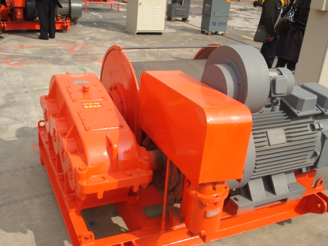 QTZ160(6516)塔式起重機起升機構(gòu)(2600kg)采用YZRSWF280M-4/8-55/55KW雙速電機,由電機通過齒形聯(lián)軸節(jié)帶動減速箱,再驅(qū)動卷筒。采用有級調(diào)速,最低穩(wěn)定速度小于5米/分,使吊運的物品起、制動平穩(wěn)。當采用2繩時速度可達100m/min、50m/min、10m/min,采用4繩時可達50m/min、25m/min、5m/min。