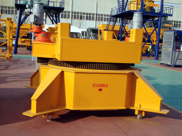 【回轉(zhuǎn)機構(gòu)】: 回轉(zhuǎn)機構(gòu)是為塔機上部回轉(zhuǎn)提供動力的傳動裝置,該裝置由尾部帶制動器的力矩電機、行星減速器、小齒輪、回轉(zhuǎn)限位器等組成;本塔機采用了兩套這樣的裝置,對稱地分布于回轉(zhuǎn)支承兩邊,安裝在上支座上,其小齒輪與回轉(zhuǎn)支承的大齒圈嚙合。