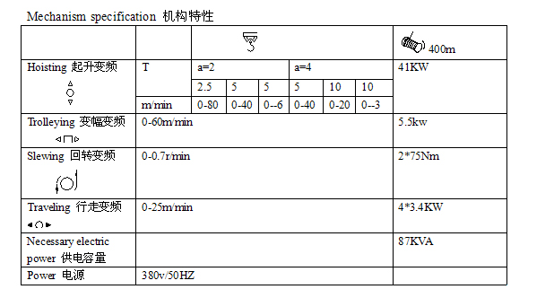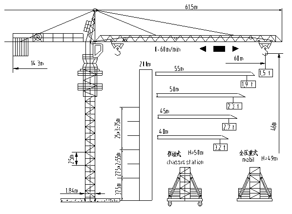 應(yīng)廣大客戶(hù)需求,鴻達(dá)集團(tuán)不斷進(jìn)行技術(shù)創(chuàng)新,現(xiàn)推出新塔機(jī)QTZ125F(6015)。這是一款全變頻無(wú)極調(diào)速塔機(jī),額定起重力矩125 T•M,最大臂長(zhǎng)60M, 60M處可吊1.5T,最大起重量為10噸,臂長(zhǎng)組合為5m遞減,共可組合成5種不同的長(zhǎng)度,最小臂長(zhǎng)為40M,使用十分方便且滿足GB/T5031<<塔式起重機(jī)>>和GB5144<<塔式起重機(jī)安全規(guī)程>>等標(biāo)準(zhǔn)。