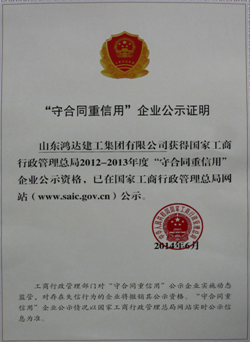 | 山東鴻達(dá)重工集團(tuán)被國家工商總局繼續(xù)公示為“守合同重信用”企業(yè) |